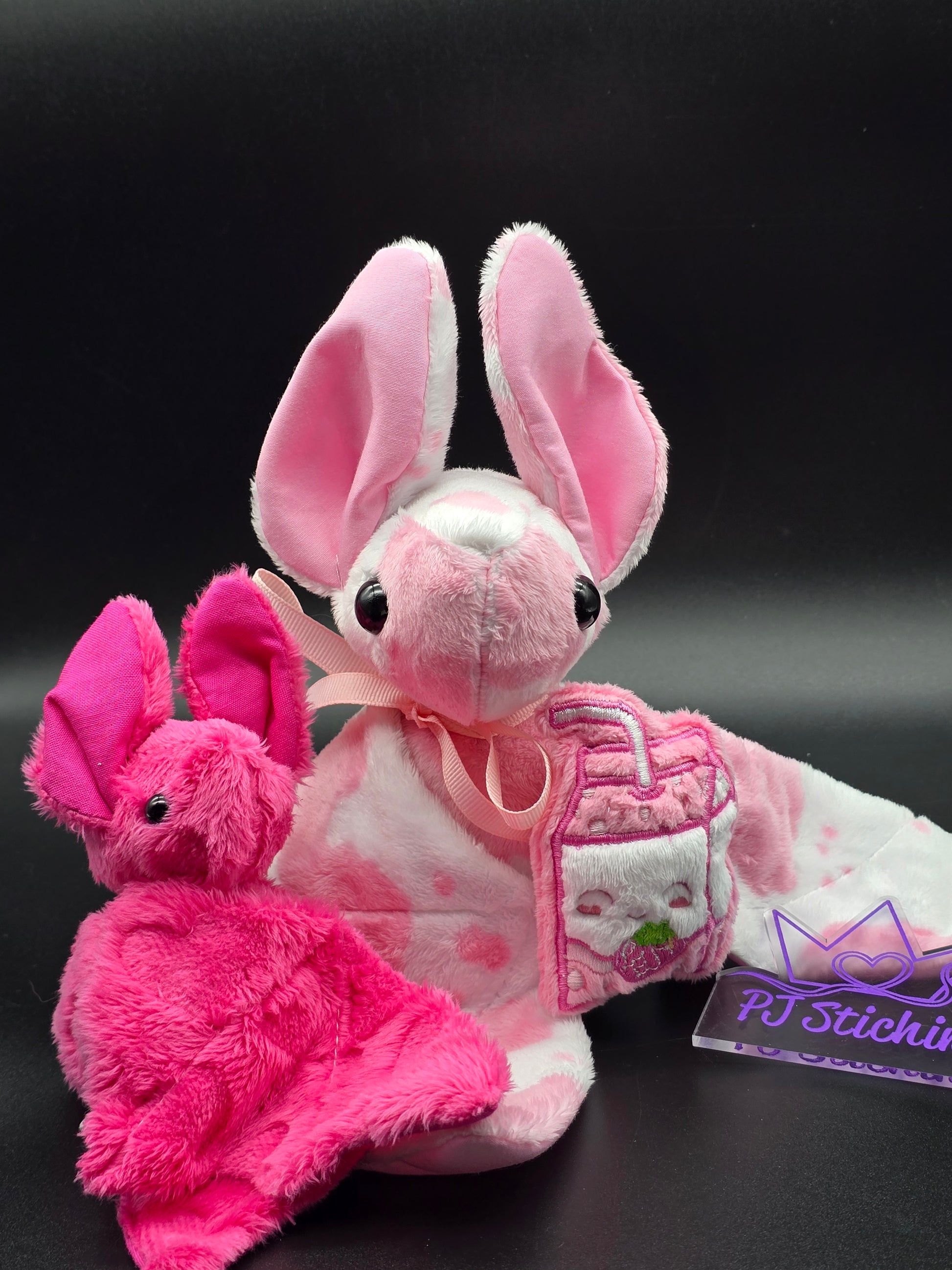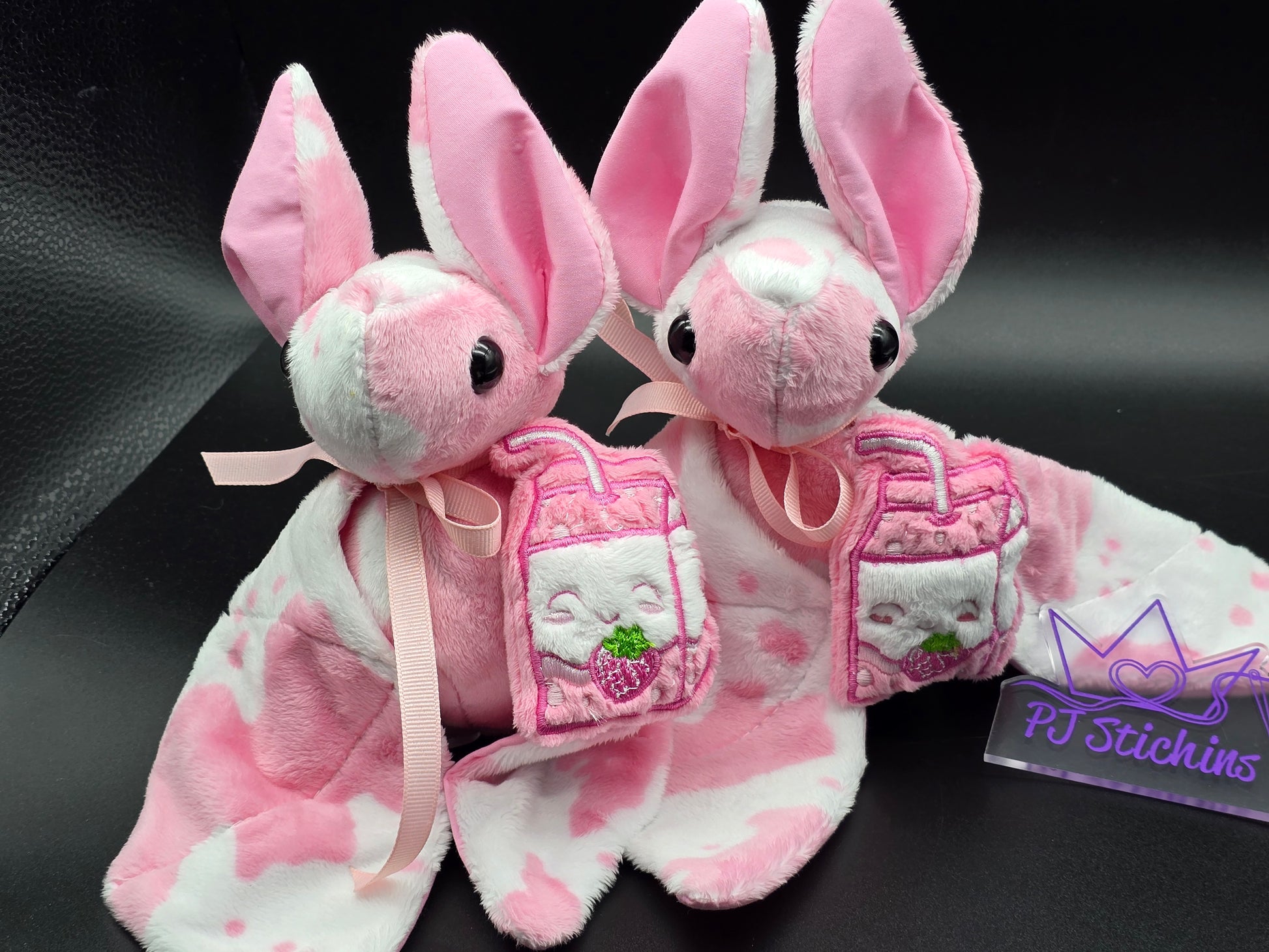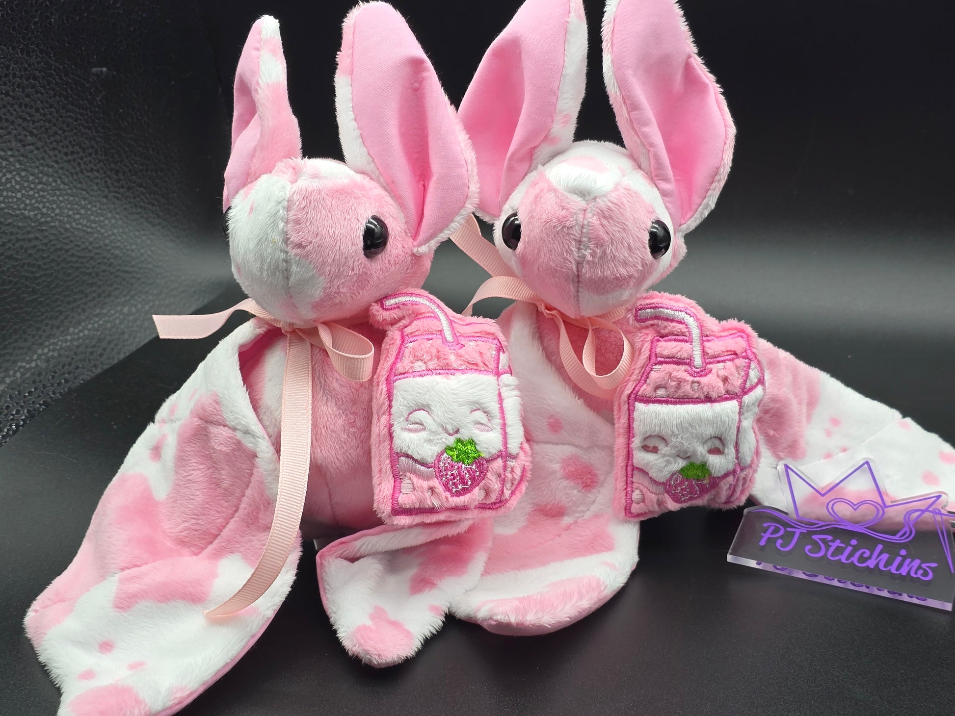 Minky, Custom fabric, Safety Eyes, thread, weighted stuffing beads, and poly-fil.