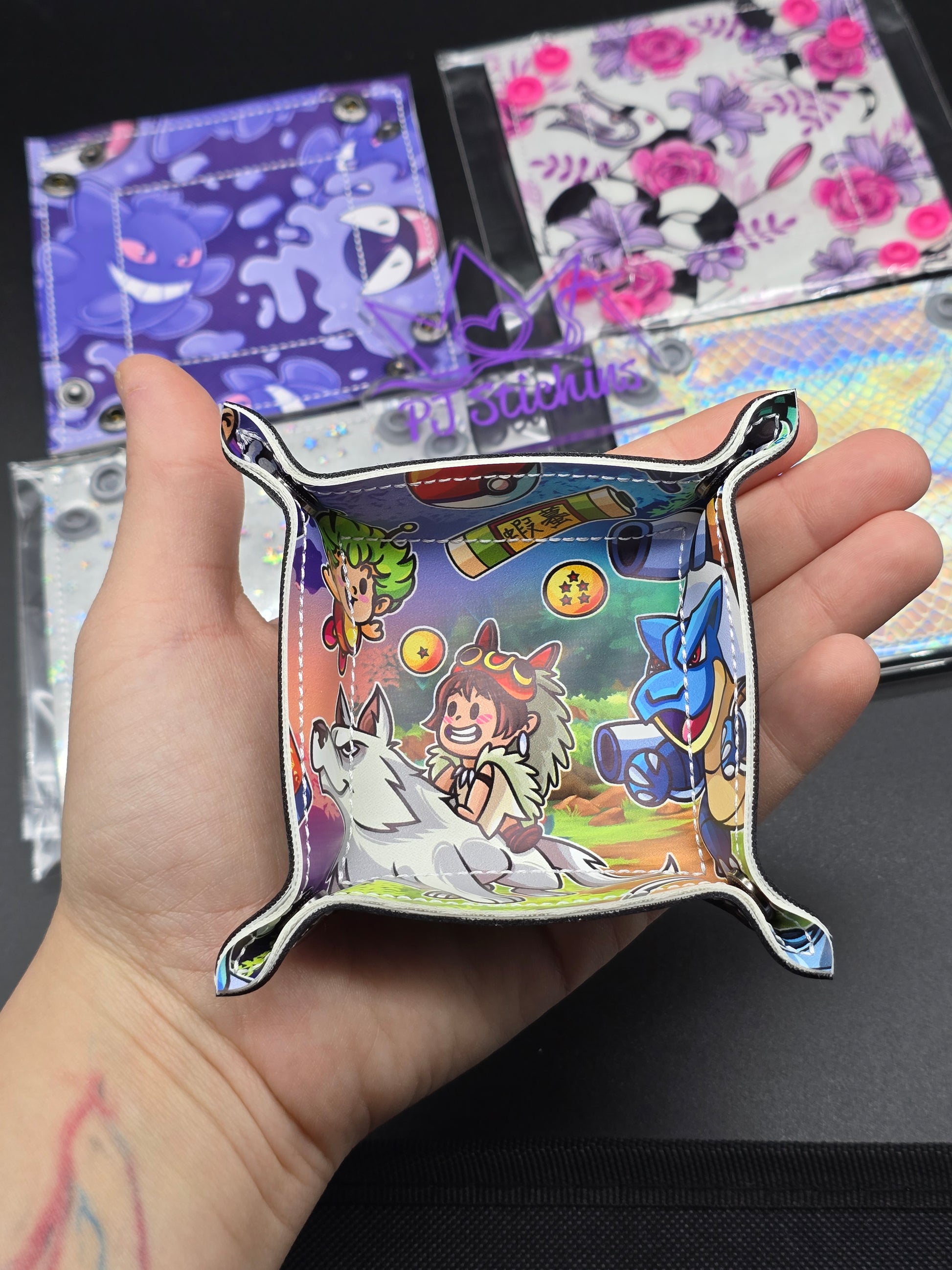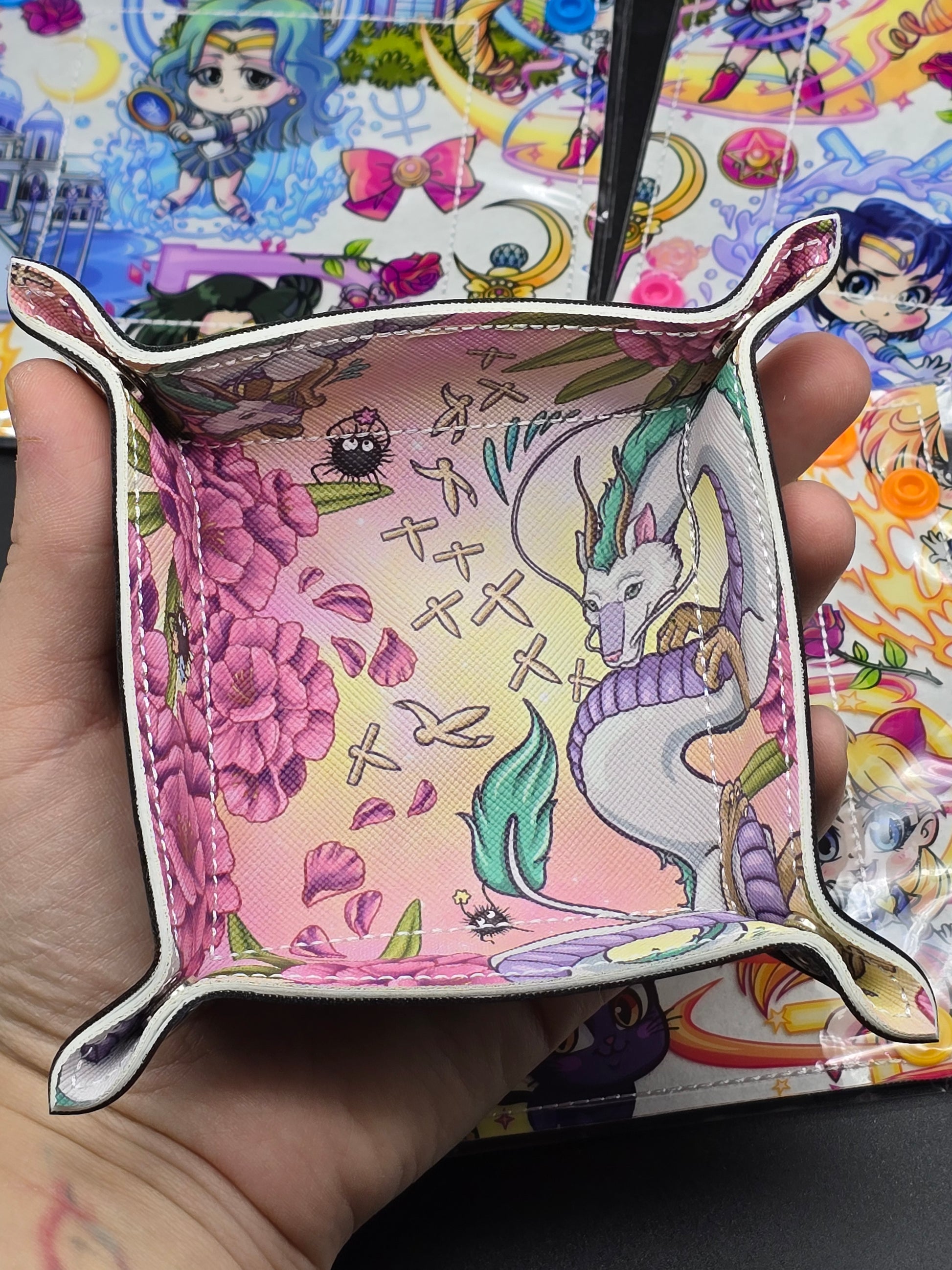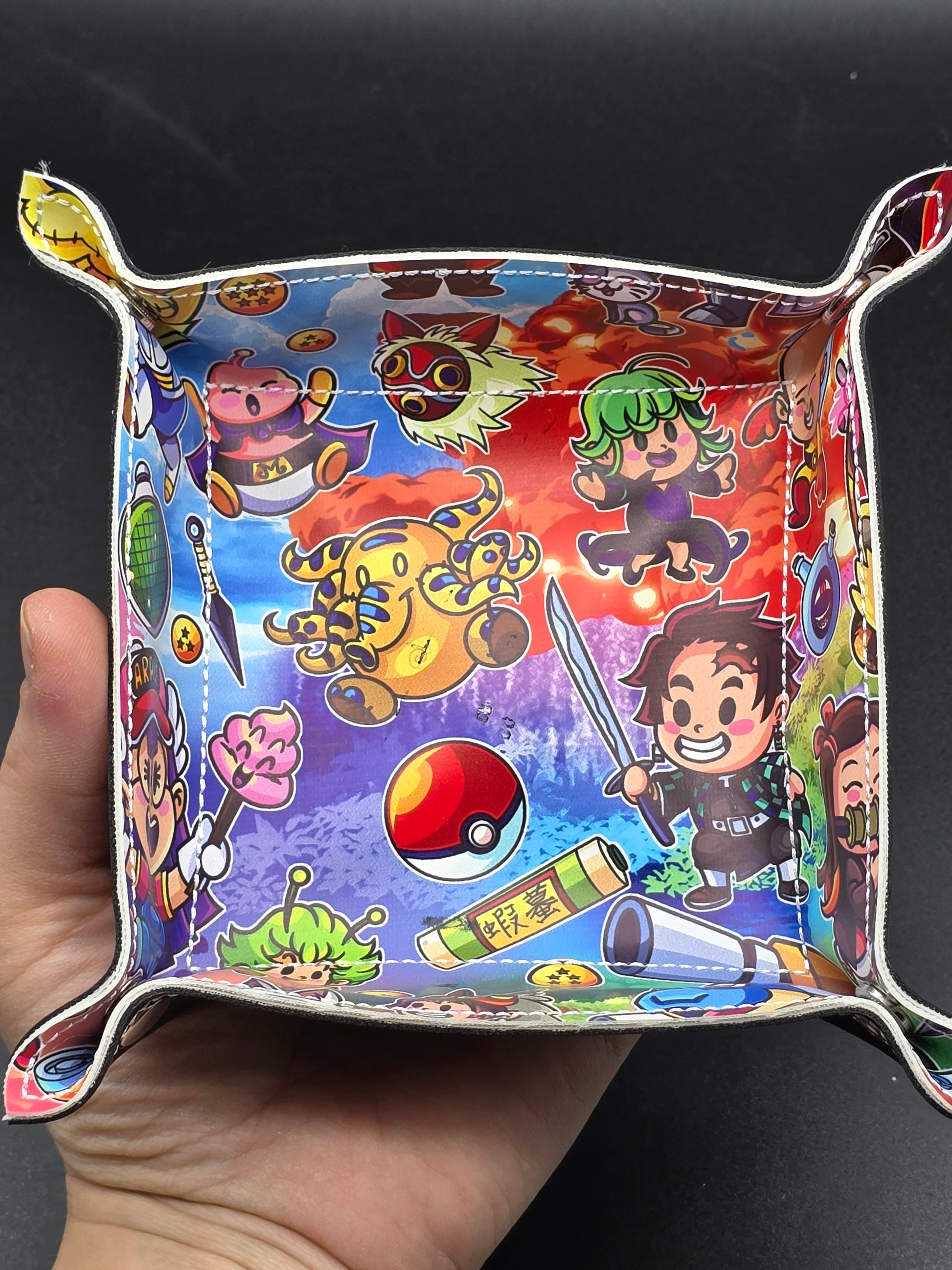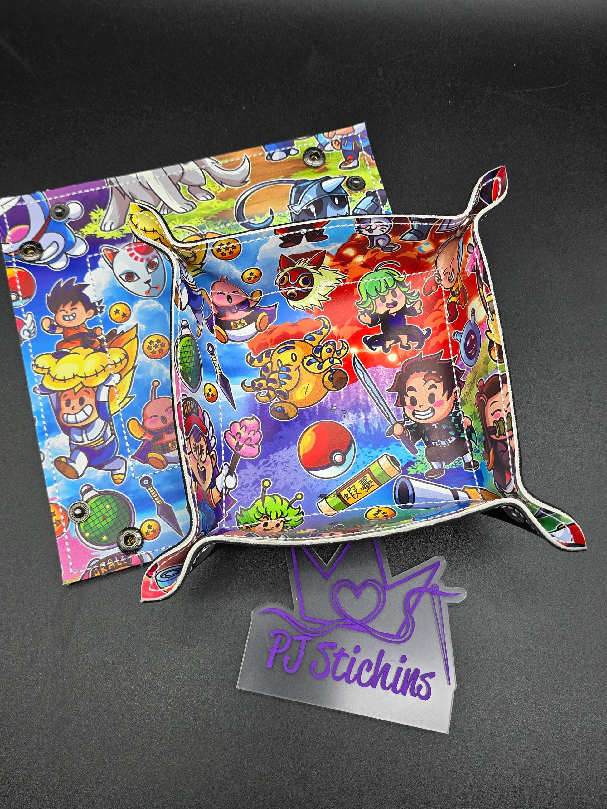 The corners snap together to make it into a tray. Can be used for dice but also various other things.