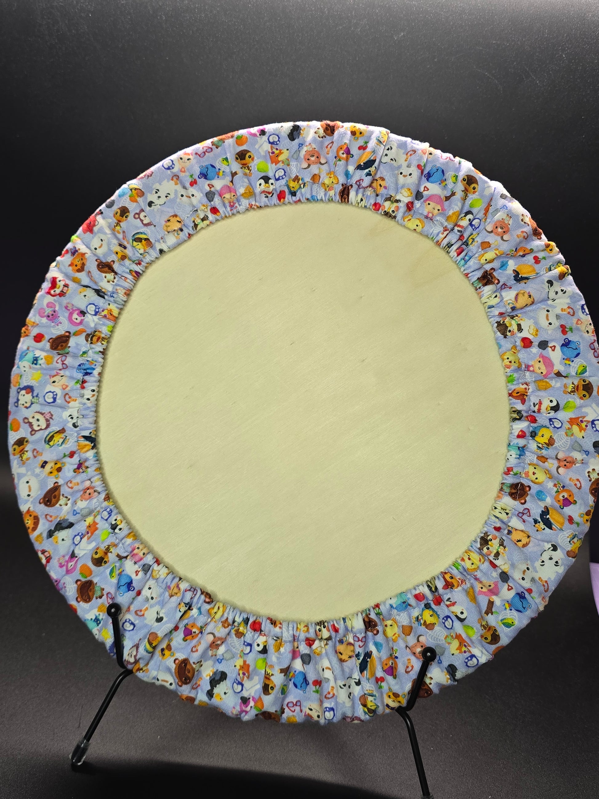 Steering wheel cover fits standard size wheels. They are made with a knit/stretchy fabric and please know that they can slide some.